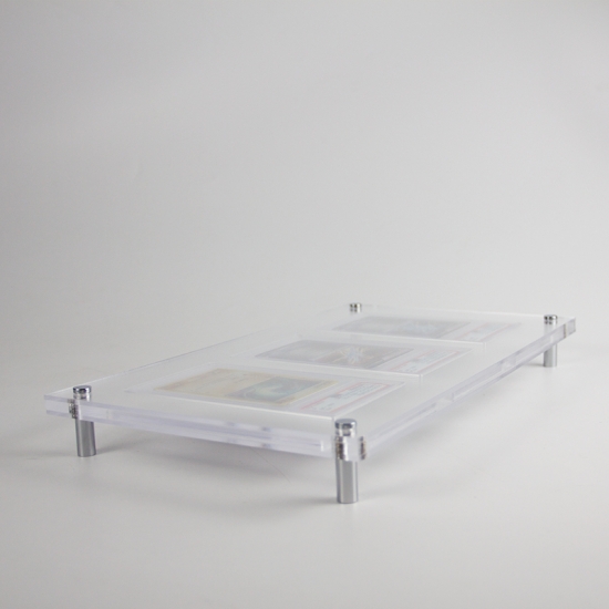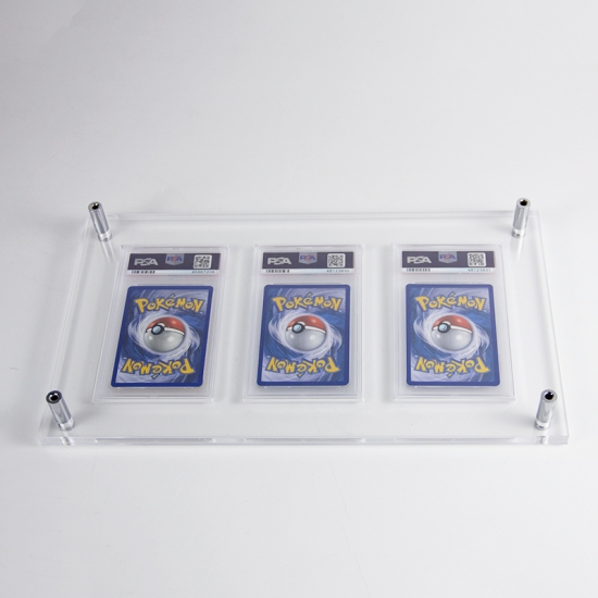 Realizzato in acrilico resistente e antigraffio, questo supporto a 3 scomparti offre una protezione duratura per le lastre classificate, mantenendo al contempo la visibilità libera di ogni tessera; il suo design angolato garantisce che la parte anteriore di ogni lastra (e i dettagli di classificazione) siano facilmente visibili, a differenza delle soluzioni di archiviazione piatte. La struttura stabile (rinforzata con elementi di fissaggio in metallo) impedisce il ribaltamento, anche su superfici irregolari, e il layout compatto e multi-slot consente agli utenti di organizzare una piccola collezione in una disposizione coerente e visivamente accattivante, bilanciando la praticità con un'estetica espositiva pulita e professionale.