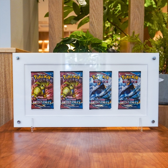 Realizzato in acrilico di alta qualità e antigraffio, questo espositore a 4 scomparti offre una solida protezione contro polvere, graffi e piccoli danni, preservando le condizioni dei booster pack; la sua cornice bianca e i pannelli trasparenti mettono in risalto la grafica della confezione senza distrazioni, e il design a doppio uso (da tavolo/parete) aggiunge flessibilità per qualsiasi spazio espositivo. A differenza dei contenitori sfusi, organizza i booster in modo ordinato in una disposizione compatta e accattivante, bilanciando la conservazione pratica con l'aspetto estetico, sia per le collezioni personali che per i piccoli allestimenti commerciali.