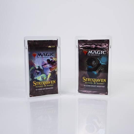 Serve come un strumento di visualizzazione discreto : il suo design sottile e trasparente lascia che l'immagine del booster sia al centro dell'attenzione, adattandosi a espositori da scrivania o scaffali da collezione. Inoltre, la sua vestibilità universale si adatta a diverse dimensioni di booster MTG (Set/Draft) e il coperchio con chiusura a scatto consente accesso facile e sicuro sulla confezione quando è pronta per essere aperta, bilanciando la conservazione a lungo termine con la praticità d'uso.