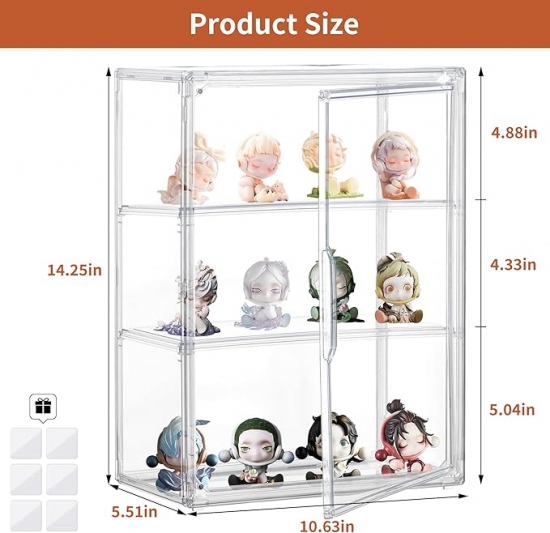 Realizzate in acrilico di alta qualità, queste vetrine offrono una trasparenza eccezionale per mettere in risalto i tuoi oggetti da collezione; con divisori regolabili, offrono uno spazio di archiviazione personalizzabile per diversi oggetti e la loro struttura resistente e antipolvere protegge gli oggetti di valore dai danni e li mantiene come nuovi, rendendole la scelta ideale sia per esporre che per conservare con stile le tue amate statuette e oggetti da collezione.