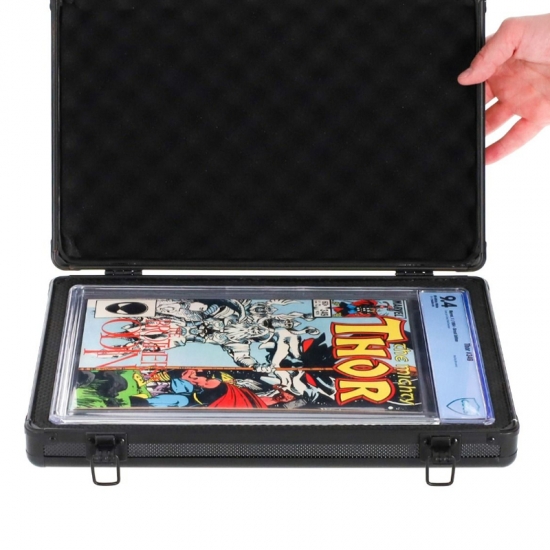 Realizzata con un guscio rigido e resistente e un interno in morbida schiuma antiurto, questa custodia offre una protezione superiore per i fumetti classificati. Protegge da urti, polvere e graffi, garantendo che i tuoi fumetti di valore (come i titoli Marvel) rimangano in condizioni ottimali. Il design consente una comoda esposizione e una conservazione sicura, adatta sia ai collezionisti che a coloro che desiderano mettere in mostra i propri preziosi fumetti.