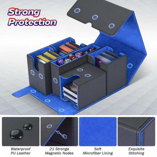 Scatola porta mazzi di carte con vassoio per dadi per MTG YugiOh, set di custodie per mazzi 5 in 1 contiene oltre 400 carte con maniche, scatola organizer per carte magnetiche resistente compatibile con le carte CCG TCG di Magic Commander