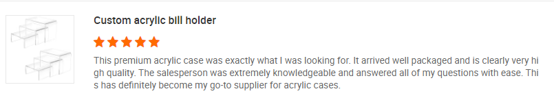 Anhui Yageli Display Co., Ltd, definita come fabbrica di prodotti artigianali, è un produttore professionale e un eccellente fornitore di servizi di progettazione di prodotti acrilici. La nostra azienda ha un capitale sociale di 4,6 milioni di RMB e ha ottenuto il diritto di autoesportazione dell'IVA generale del contribuente. E l'attuale capacità annua dell'azienda è di oltre 60 milioni di RMB, che fornisce una grande varietà di prodotti acrilici in tutto il mondo. Abbiamo costantemente introdotto tecnologie avanzate e apparecchiature di elaborazione per continuare a migliorare il livello tecnologico.